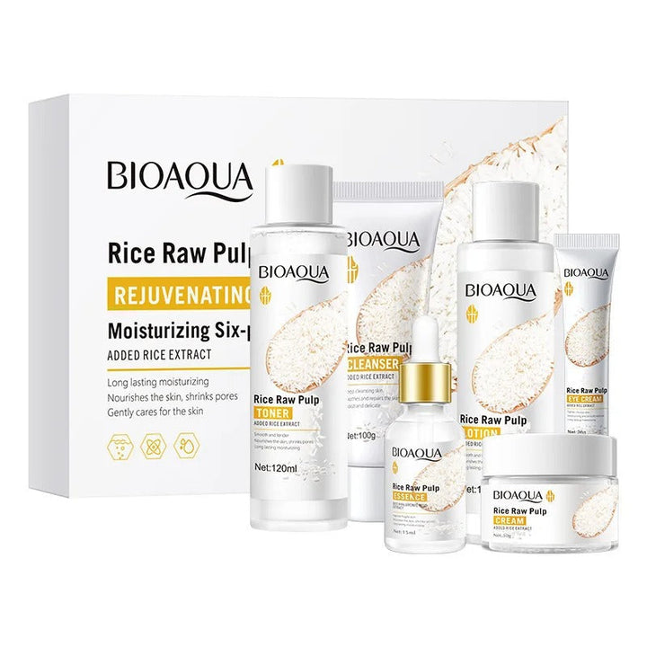 6pcs/set BIOAQUA Rice Raw Pulp Skin Care Sets Face Cream Serum Anti wrinkle Moisturizing Facial Cleanser Toner Korean Face Care