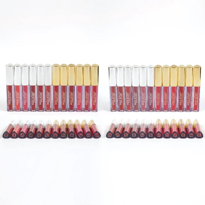 Crafted with precision and passion, our Matte Finish Lip Gloss glides effortlessly onto your lips, enveloping them in rich, vibrant color that refuses to budge. Whether you're sipping coffee, conquering meetings, or dancing the night away, rest assured your lip color will stay put, thanks to its transfer-proof and waterproof properties.
